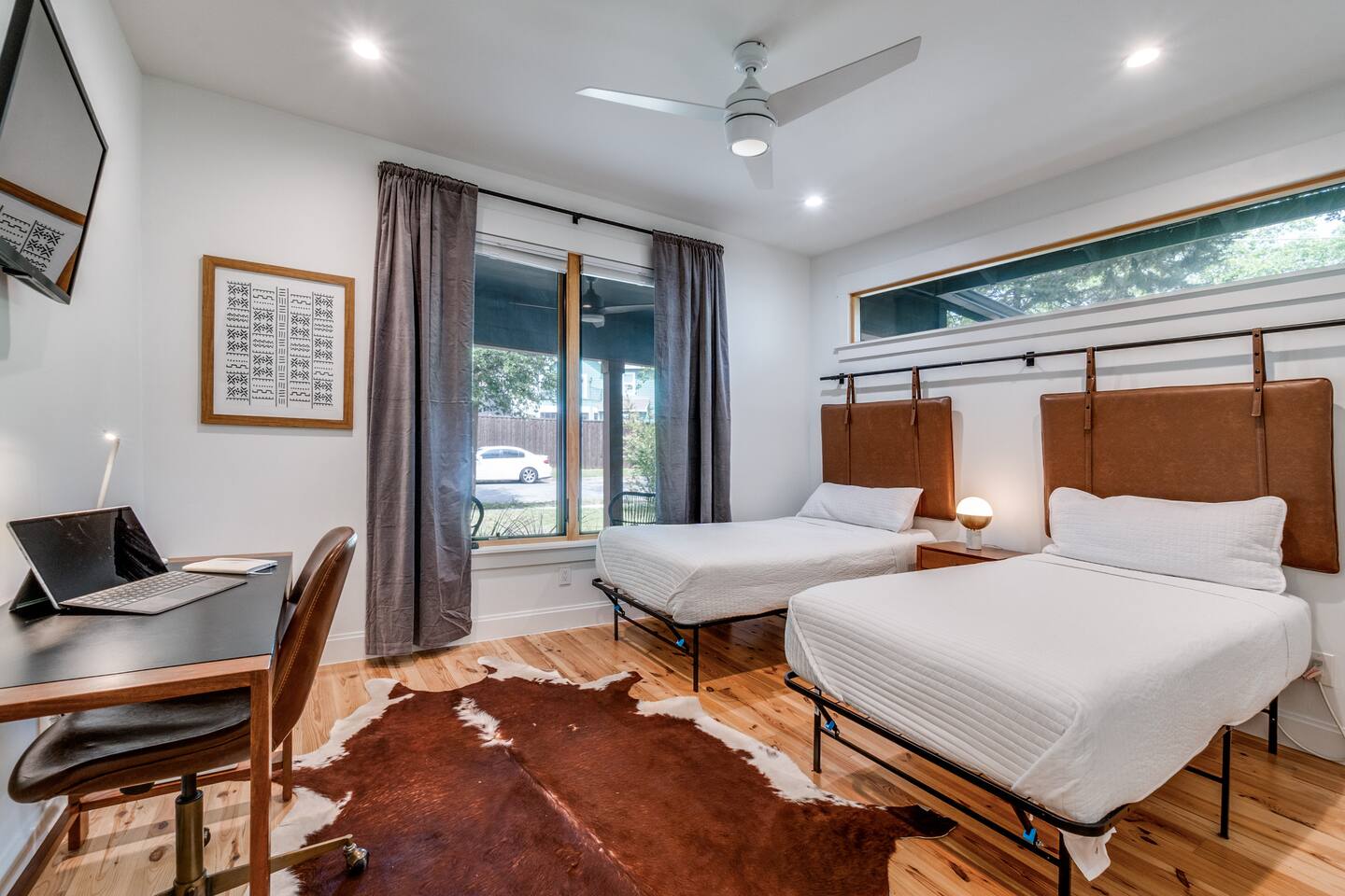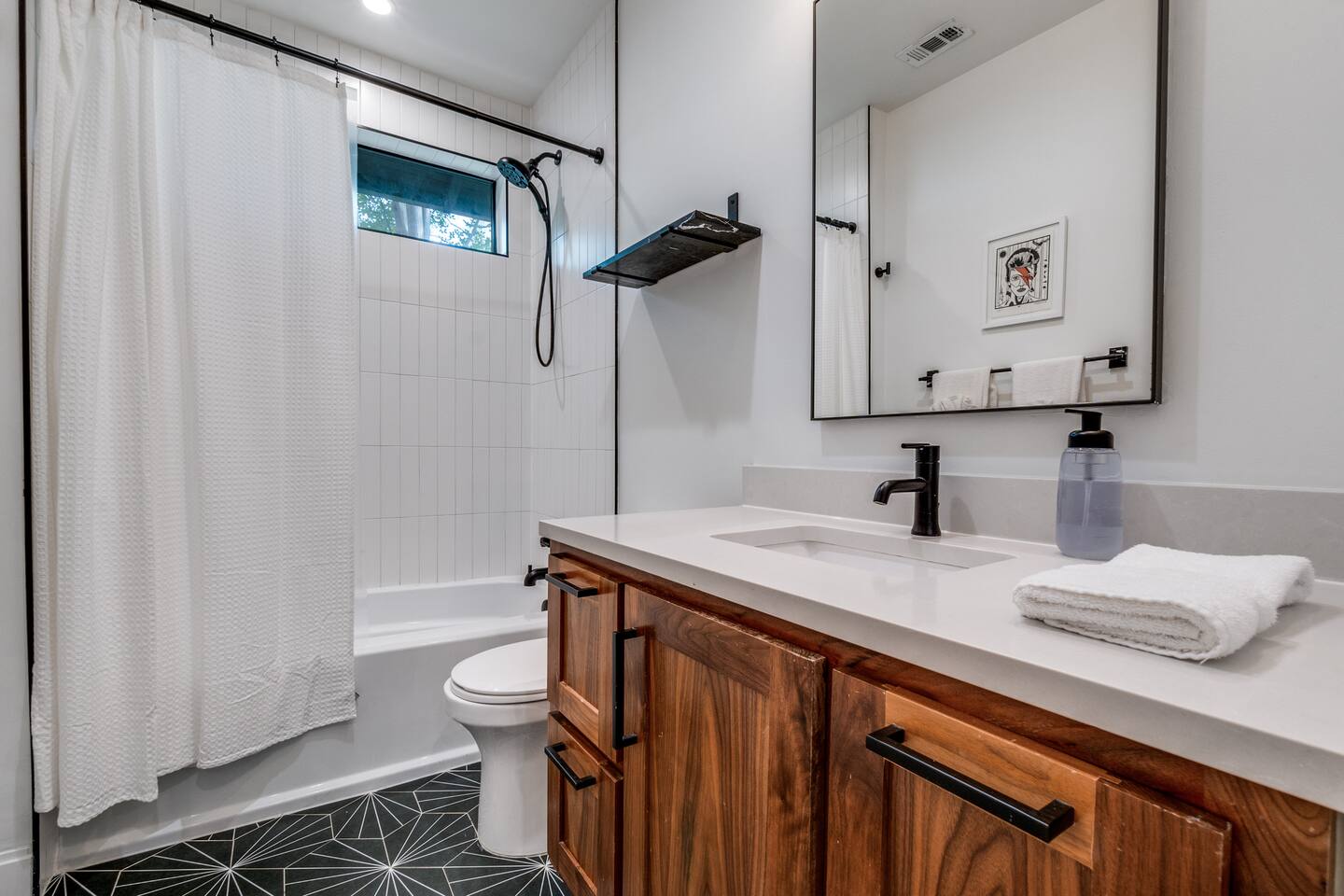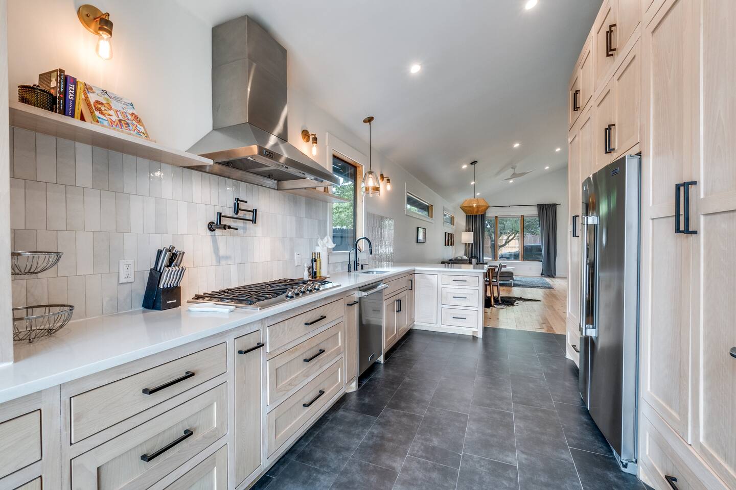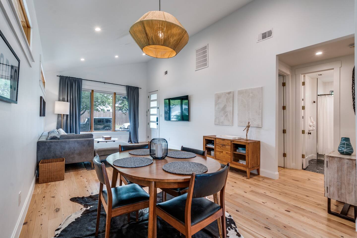 Soaring ceilings and designer finishes define this expertly renovated home in Dallas' most diverse, vibrant and walkable neighborhoods. Welcome to Lower Greenville! Custom cabinetry, plenty of prep surface, ample storage and gleaming Viking Appliances. This kitchen is as functional as it is beautiful. We have included all the normal housewares you might need to prepare and serve a meal. The modern and spacious primary bath includes dual custom-built vanities, full glass shower and soaking tub. The guest room is outfitted as a double twin or king based on your preference. A large backyard, perfect for pets, is partially sharded by an 80+ year old Pecan. Soak up the sun on the expansive back deck, dine al fresco (with seating for 6) or relax in the sparkling hot tub. Crushed bluestone drive accommodates three vehicles off street - This home does not include a garage.